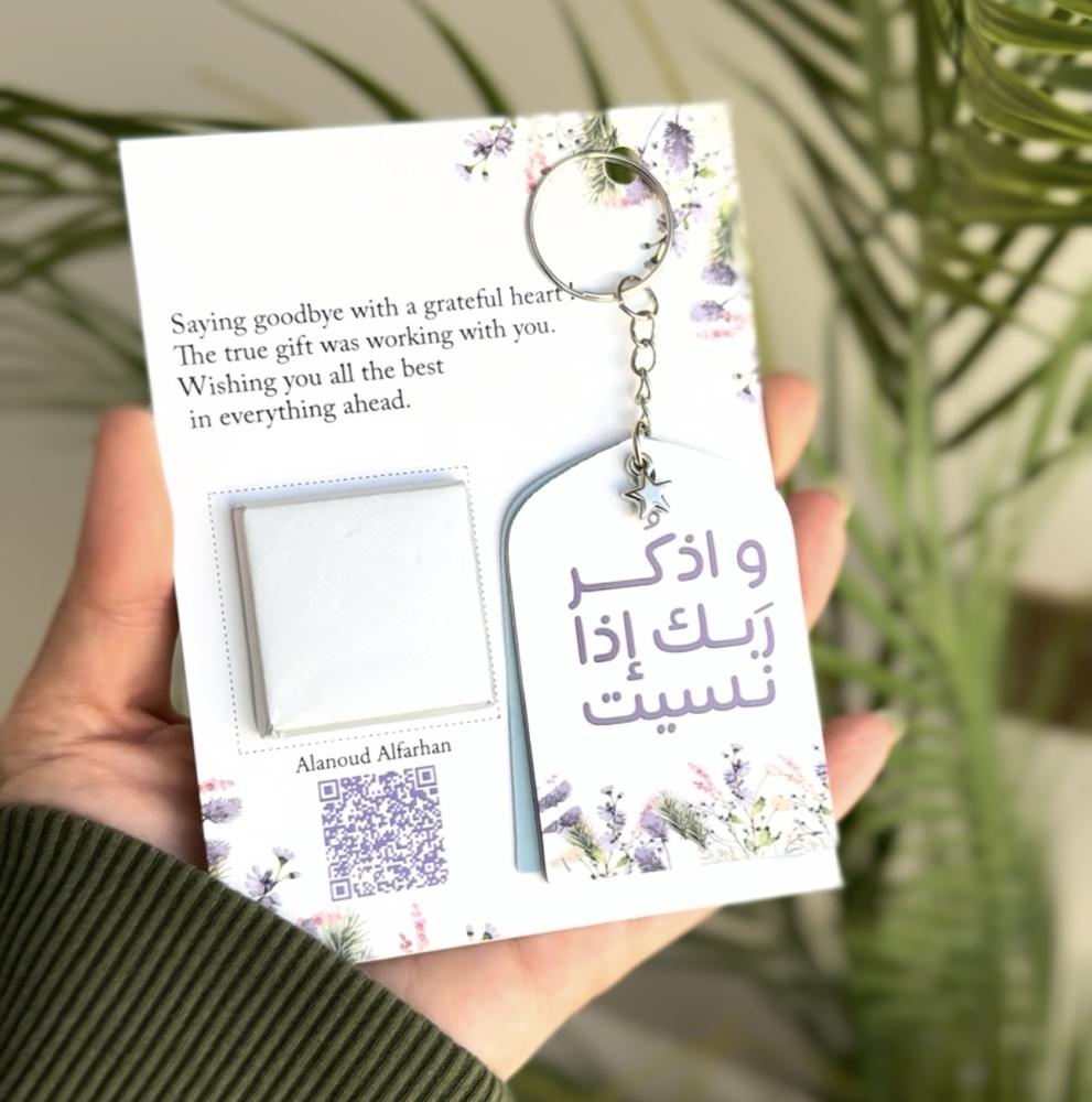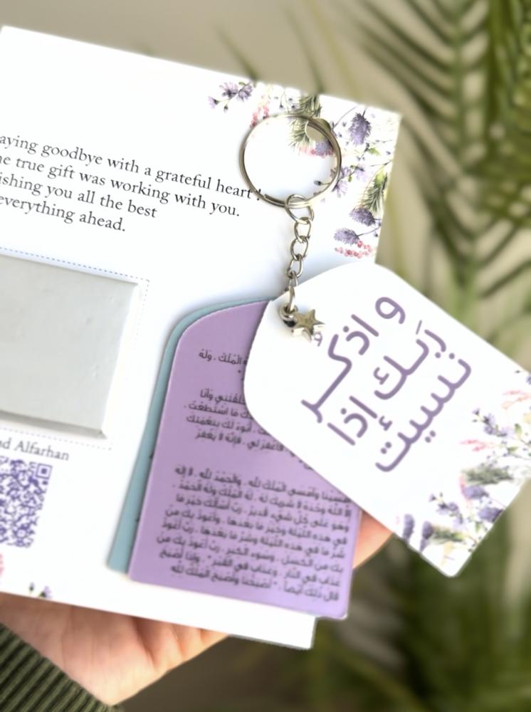 كرت مع ميدالية اذكار + قطعه شوكلت ( ويفر او سادة ) من انوش حسب المتوفر